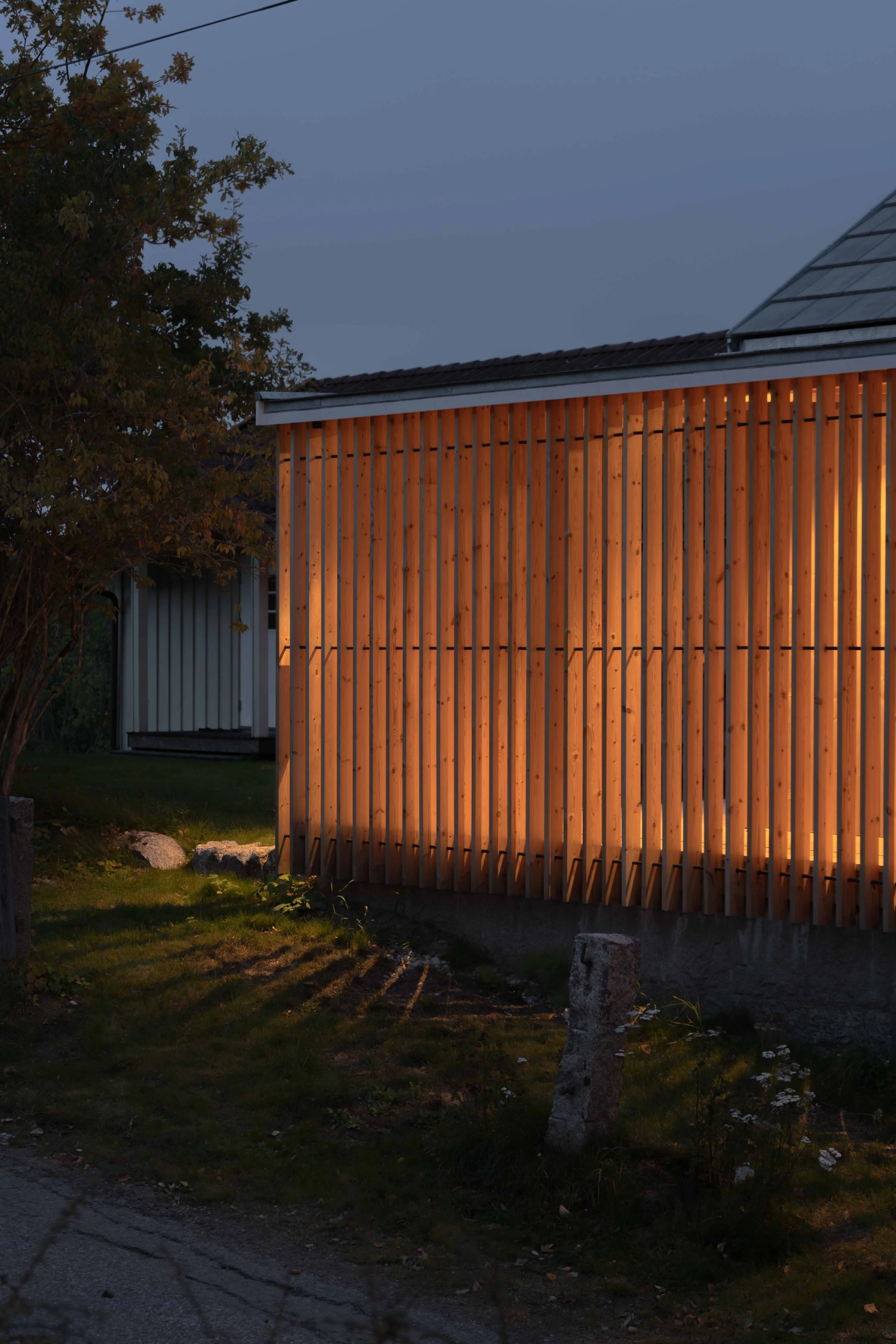 Fritidsboligen er inspirert av tidligere tiders byggeskikk med hvitmalt lektekledning, knappe takutstik, historisk takvinkel og proporsjon. Taket er knappet helt inn, noe som gir et presist og moderne volum.