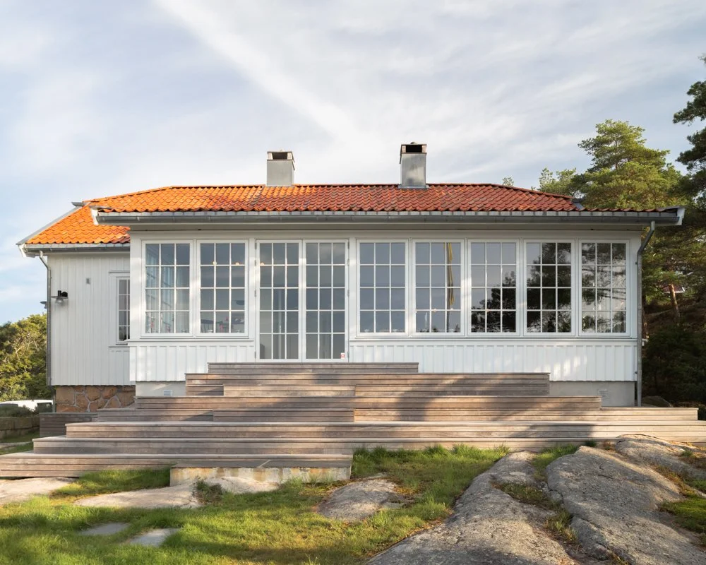 Utvendig har hovedhuset gjennomgått vedlikehold i form av kledning, taksten, vinduer mm. Vinterhagen som tilhører hovedhuset er utbedret og består nå av større glassflater.